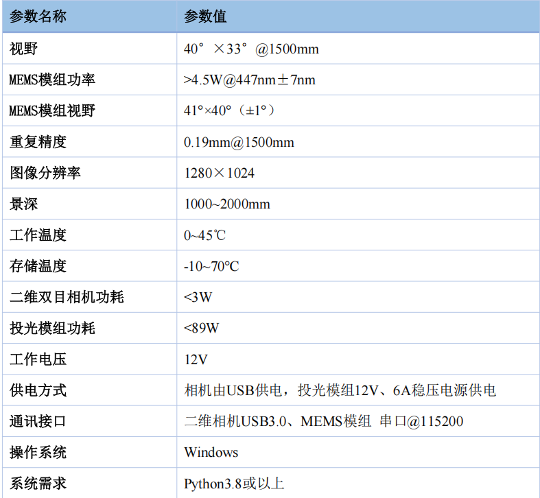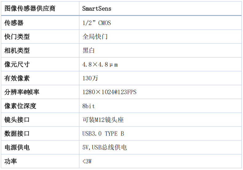 配备的二维双目相机外观图如下所示,主要参数如下表: